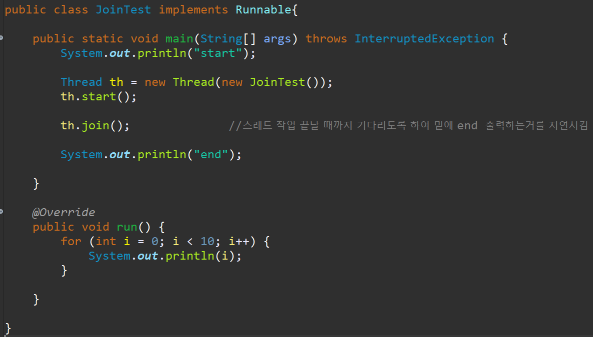 클래스 자체 객체로 만들기 (Thread th = new Thread(new JoinTest());)