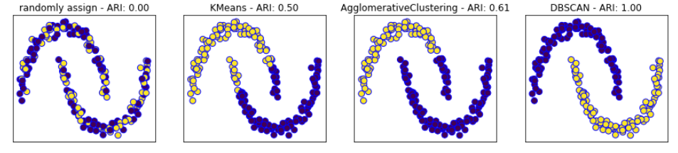 - 복잡한 형상도 찾을 수 있으며, 어떤 클래스에도 속하지 않는 포인트를 비교적 잘 구분해낸다