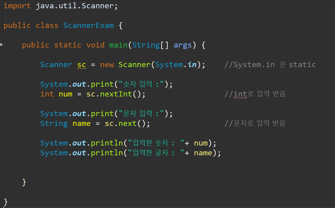 - 숫자 입력 시 : int num = sc.nextInt();