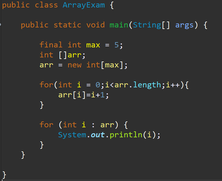 배열 선언 후 배열 안에 1부터 5까지 넣고 차례로 출력하는 배열 만들기